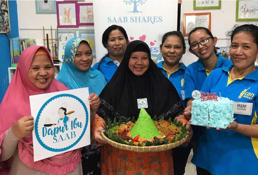Pembinaan terhadap ibu rumah tangga yang tak berpenghasilan diberikan melalui kelas keterampilan dan motivasi oleh Saab Shares, mereka (ibu-ibu binaan) mampu menghasilkan karya dan berpenghasilan melalui usaha cathering.